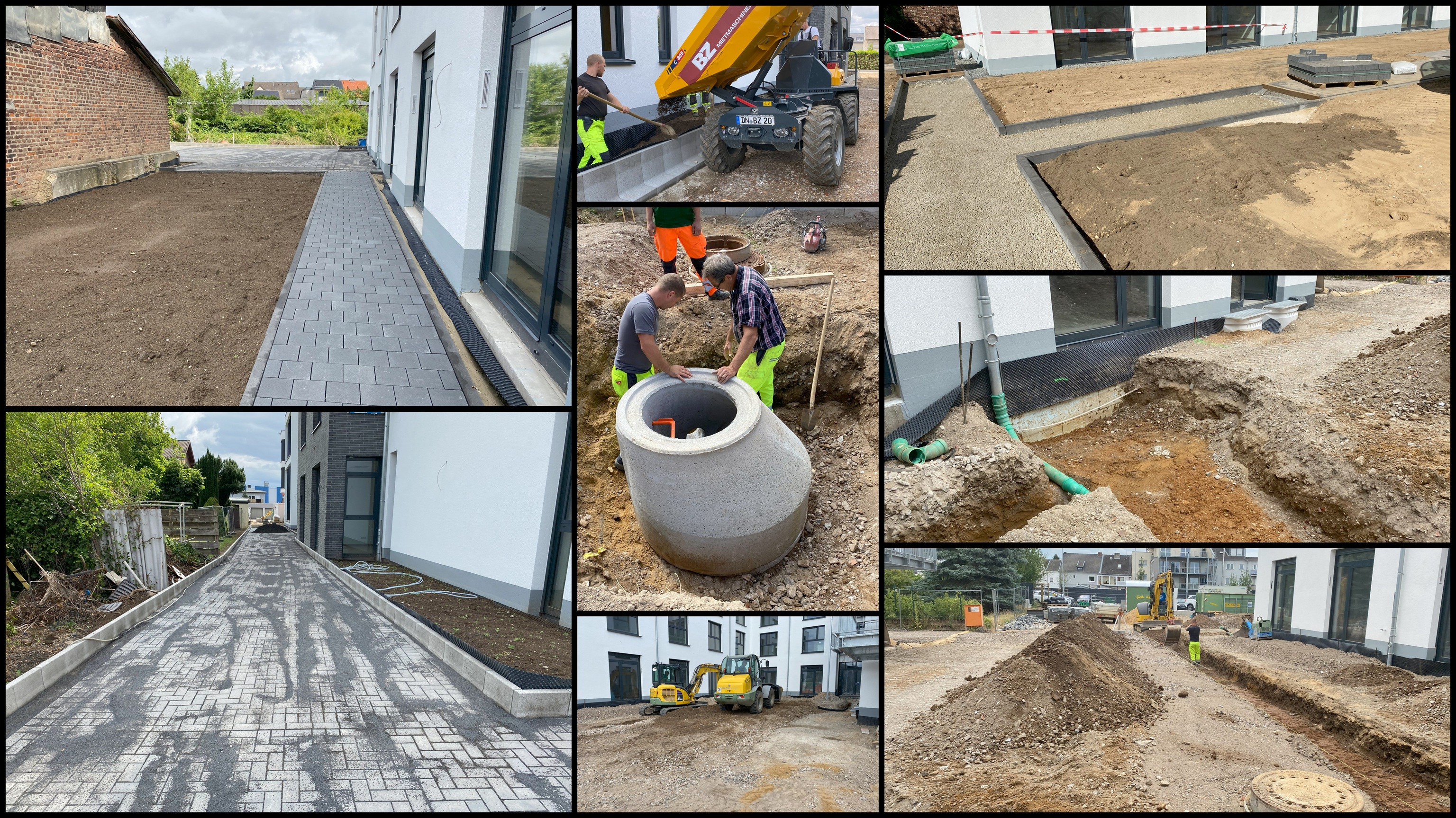 Nach Fertigstellung der Erd- und Entwässerungsarbeiten haben wir nun mit den Arbeiten zur Erstellung der Außenanlagen begonnen: